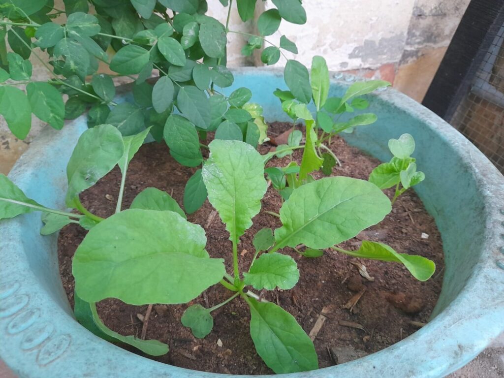 Radish is one of the fastest-growing vegetables and can be harvested sooner before your okra flowers. Radish roots can also help to break the soil and help okras to grow. It can also repel certain pests from harming your okra.