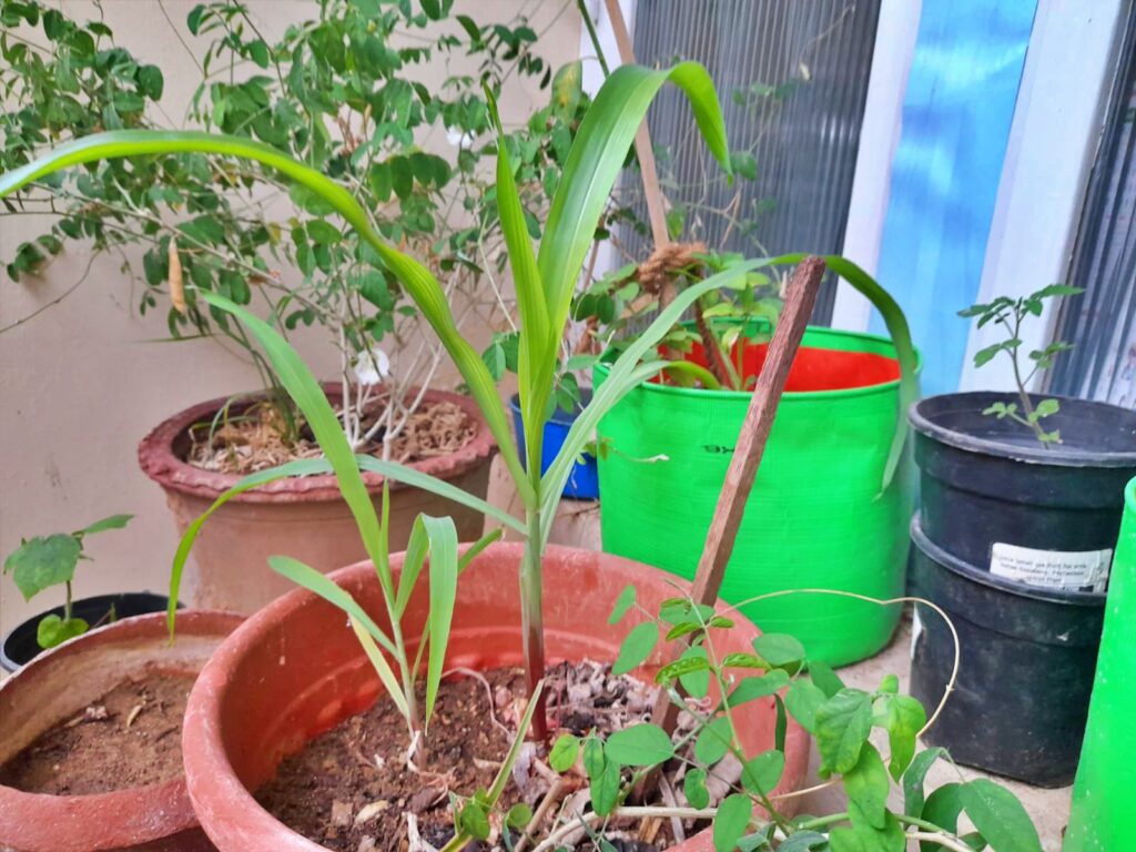 Sunflowers and Corn make great companion plants. Both these plants grow tall and don’t compete for sunlight with one another. The deep roots of sunflowers help the short root system of corn. Sunflowers help to attract pollinators and beneficial insects that help pollinate and control pests in corn.