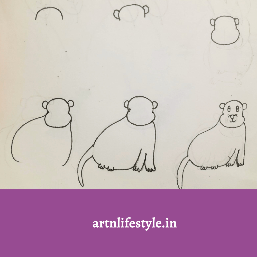 1.First draw a curved line and add the ears for the hamster’s face. Then complete the hamsters face.
