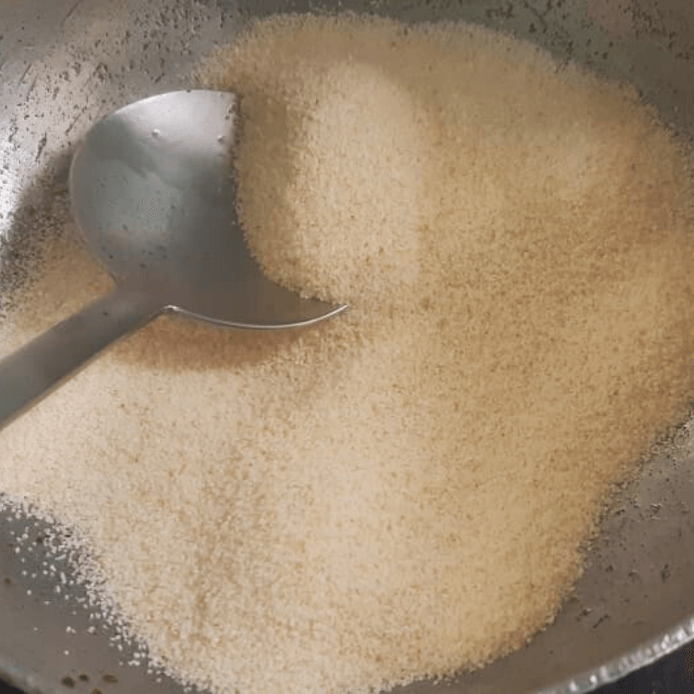 4. After the rava is roasted, remove it and set it aside.