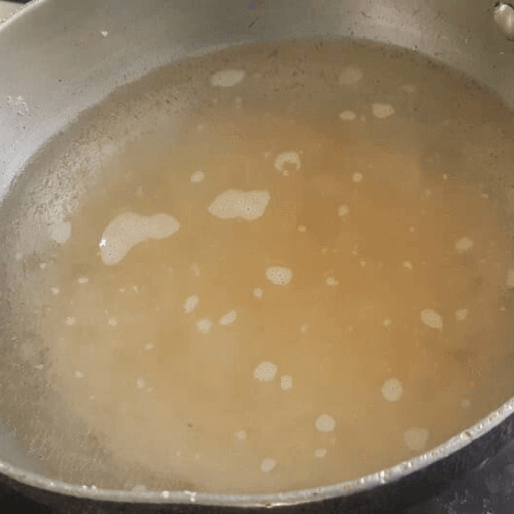 - After the water has boiled enough. You can add the sugar and stir it well. The sugar should dissolve.