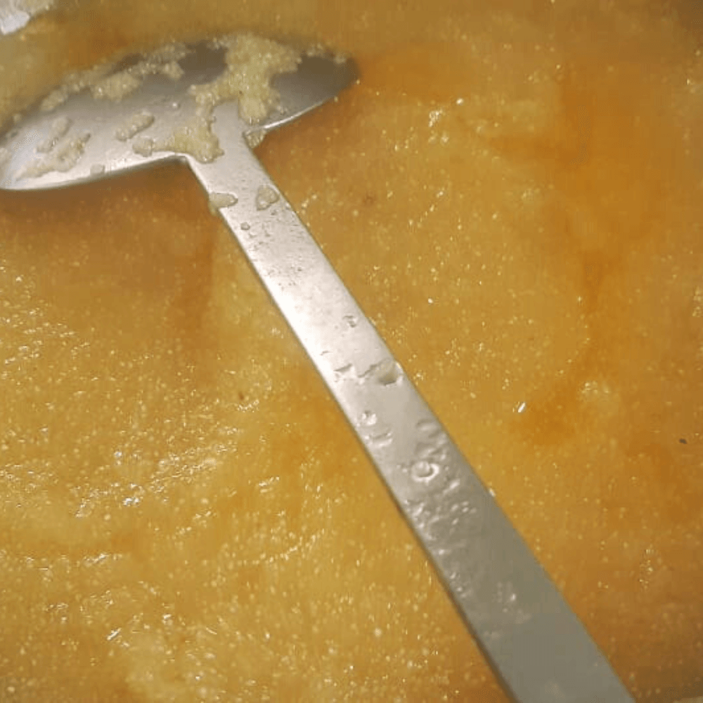 - Keep the flame low and stir it. The rava will start to cook and once rava has absorbed the water completely. The kesari is ready, you can add 2 tablespoons of ghee.