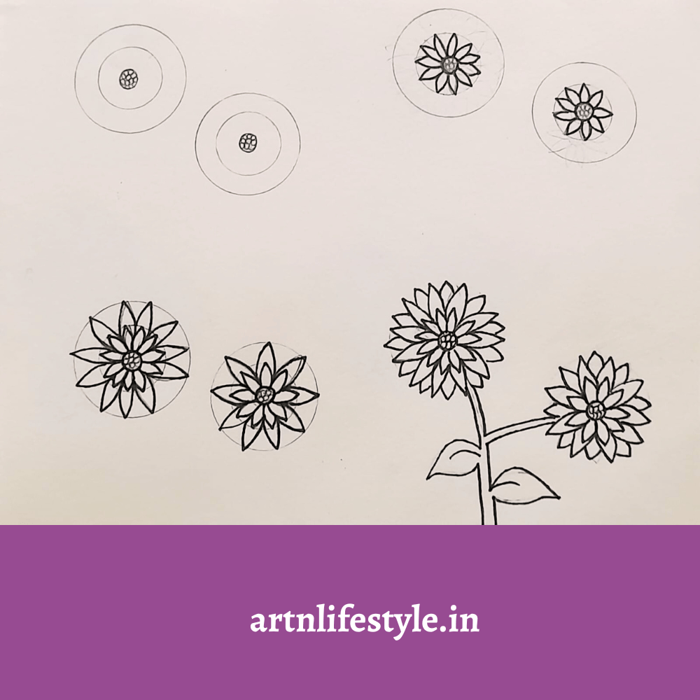 Simple drawing of flowers step by step