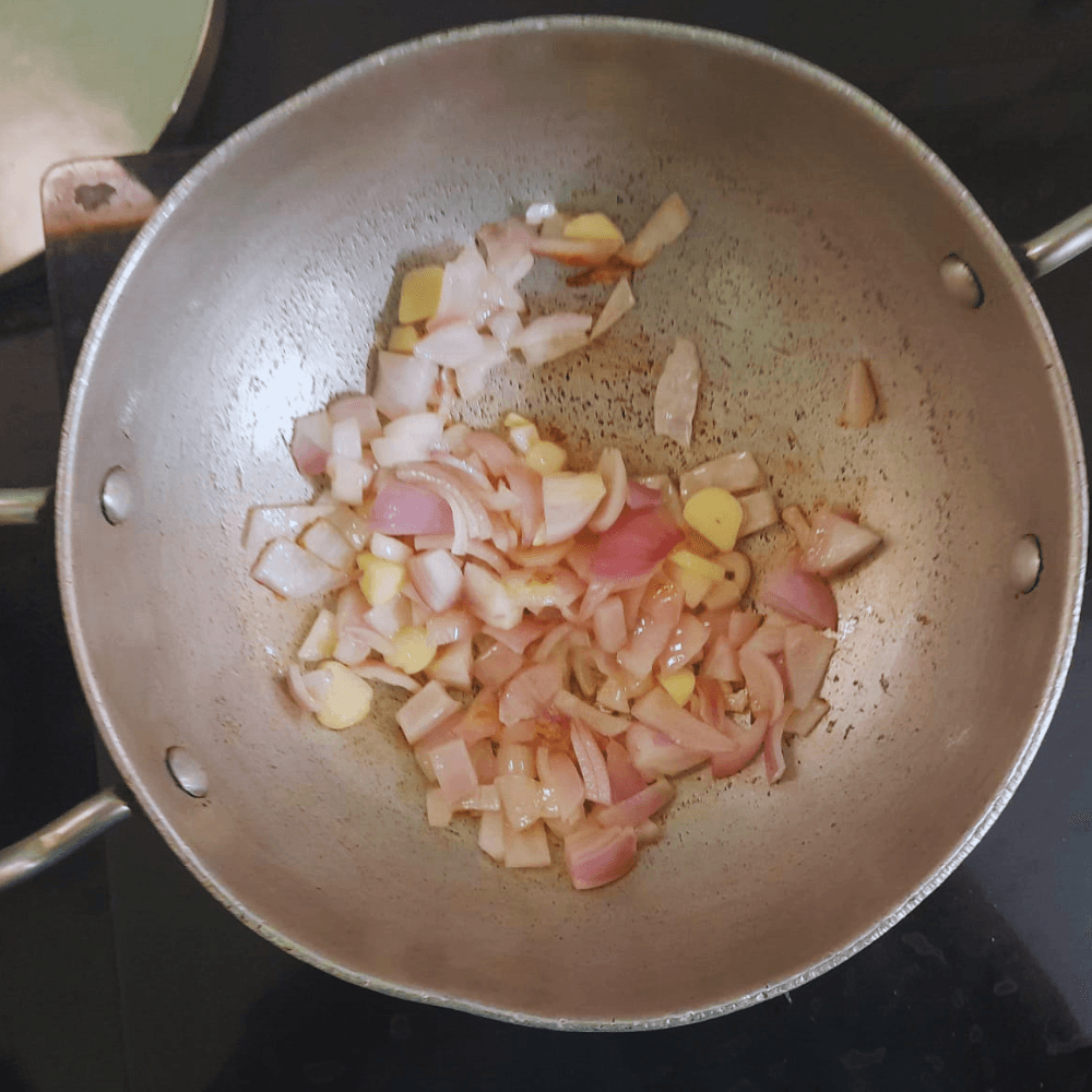3. Add chopped onions some chopped garlic and sautee it.
