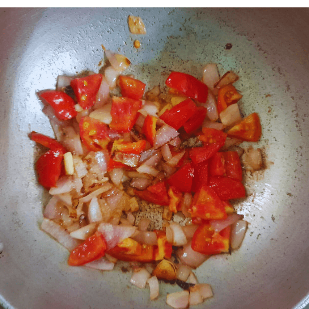 4.Then add the chopped tomatoes and cook it for few minutes.