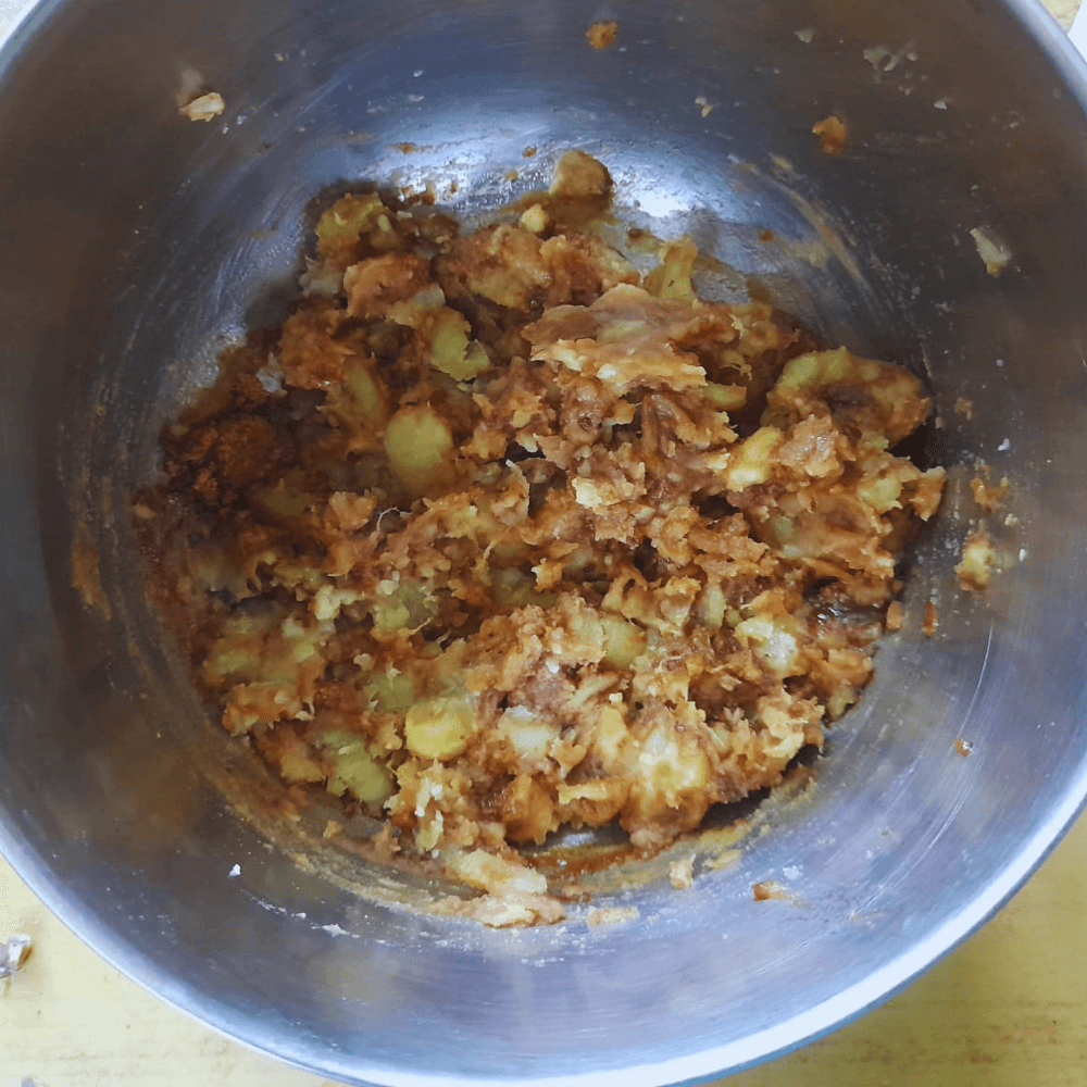 - Take a bowl add the steamed sweet potatoes and mash it well. Then add the jaggery and mix it.