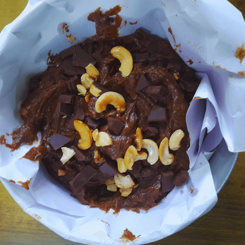 - Take a mould, fill it with parchment paper and grease it with oil.